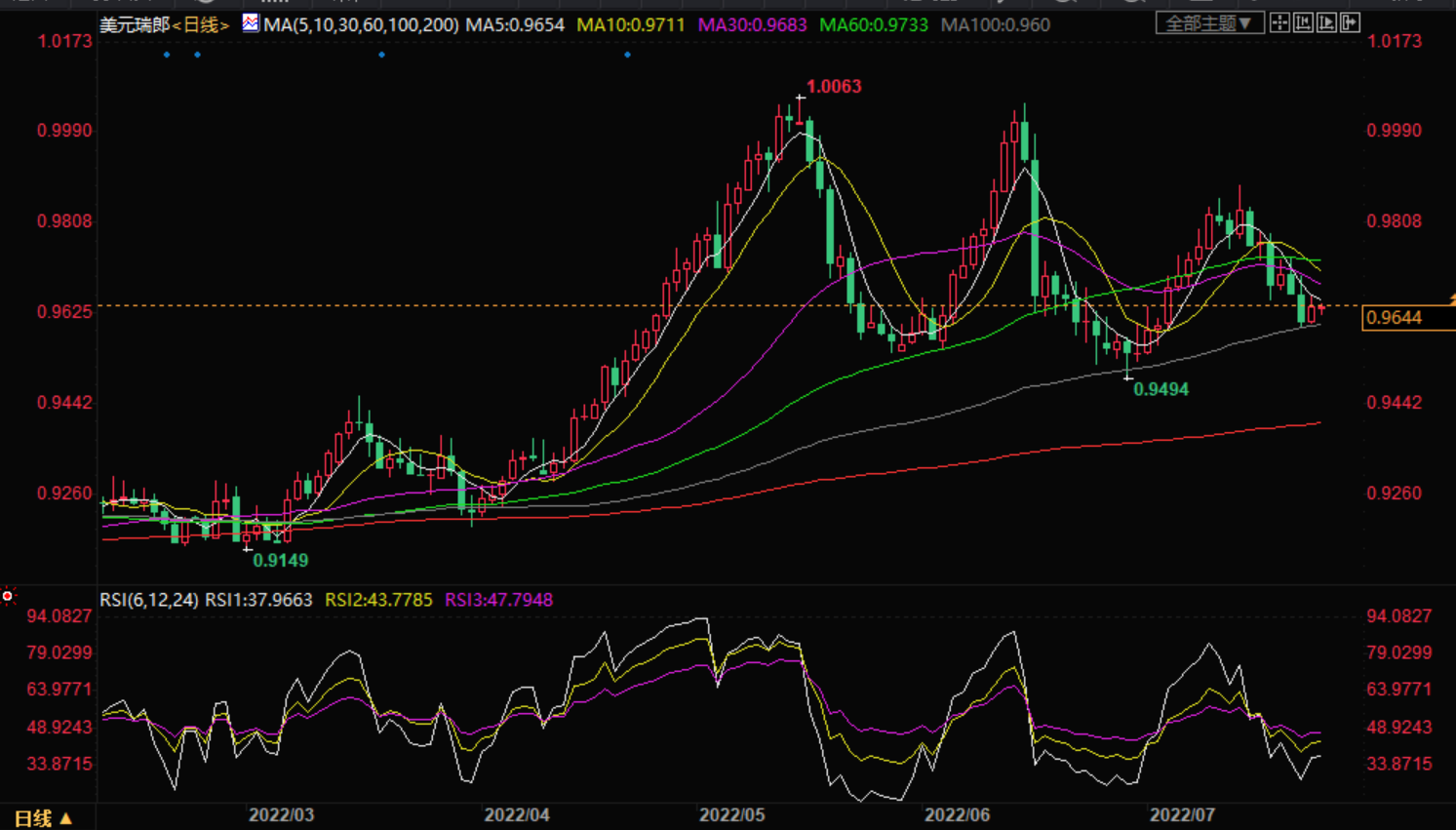 技术面上,美元兑瑞郎货币对继续在0.9630水平附近波动,注意到随机指标现在出现负重叠,等待推动价格突破上述水平并打开向上反弹至下一个位置0.9530。