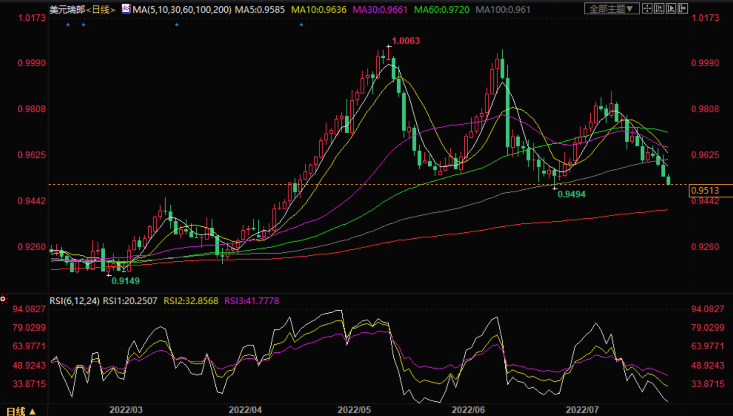 基本面上,美元兑瑞郎现在已经反弹至0.9600附近,尽管试图反弹缺乏看涨的信念。随着投资者不再关注不那么强硬的FOMC,美元正从上周四早些时候触及的7月6日以来的最低水平强劲反弹,原因是美国国债收益率大幅上升。这是为美元兑瑞郎提供一些支撑的关键因素。美元兑瑞郎已在近期内见底,并为一些有意义的升值举措铺平了道路。