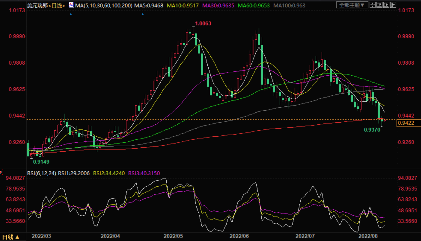 美元/瑞士法郎技术前景