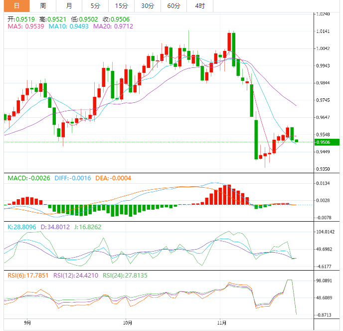 技术面上,美元兑瑞郎无法在0.9540上方长时间守住,要突破该水平,并在接下来的几个交易日中遭遇预期的负压,并将向0.9450和0.9355关口前进。