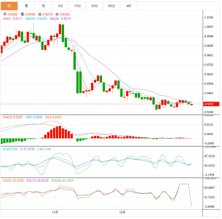 基本面上,美元兑瑞郎挣扎于明确的方向,在三个月以来的第一个负收日之后,徘徊于0.9300。瑞士法郎(CHF)最近的疲软可能与美国国债收益率的上升有关。然而,假日季节和市场上的谨慎乐观情绪似乎挑战了下行势头。在瑞士ZEW调查- 12月预期之前,清淡的日历和年终假期似乎对美元/瑞郎交易者构成了挑战,预期为-50.5,而前值为-57.5。同样值得关注的还有美国11月成屋待完成销售数据,市场普遍认为该数据为0.6%,而之前的数据为-4.6%。总体而言,美元/瑞郎空头可能会在清淡的日历中经历困难,但多头肯定不会出现。