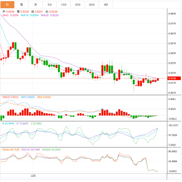 基本面上,继前期已连续上涨两日后,美元/瑞郎多头在0.9210附近获得喘息,因为交易员正关注本周大量的数据/事件。另一个挑战瑞郎货币对的是中国市场继一周农曆新年假期后回归交易。美元/瑞郎上个交易日1月11日以来首次突破10日均线。也就是说,汇价突破短期关键移动均线且MACD指标看涨,表明汇价将进一步上涨。