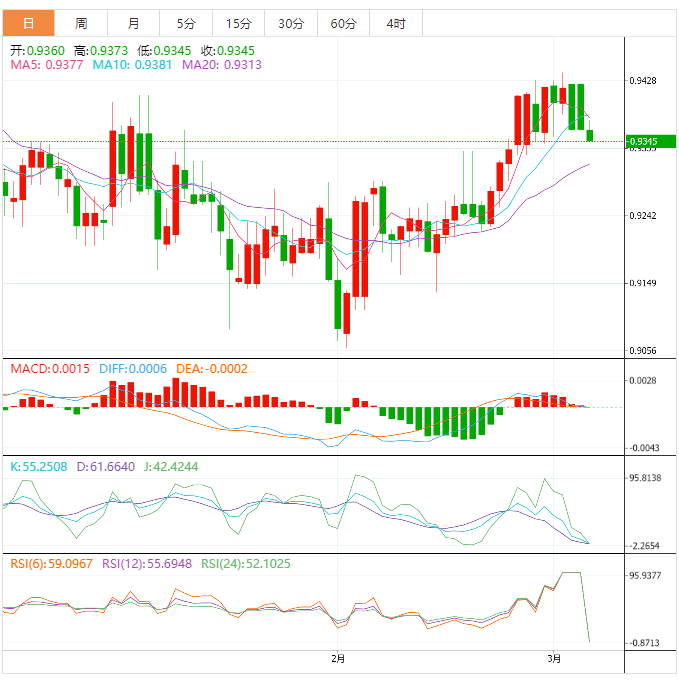 基本面上,美元兑瑞郎挣扎着捍卫从0.9360开始的修正反弹,与50-SMA阻力位发生碰撞。在此过程中,瑞士货币对在瑞士2月消费者价格指数(CPI)数据发布前表现出谨慎情绪,预期同比增长2.9%,而前值为3.3%。除了数据发布前的谨慎情绪外,看跌的MACD信号和0.9430附近的一周水平阻力位也对美元兑瑞郎的买家构成了挑战。