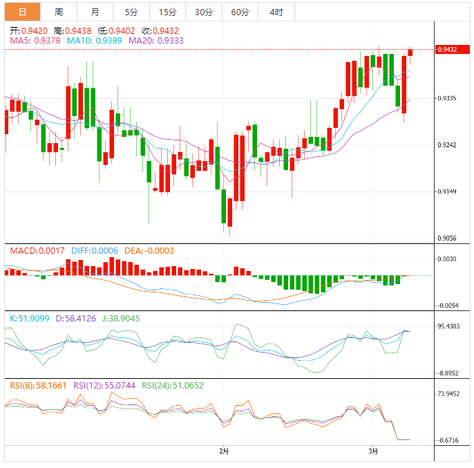 基本面上,美元/瑞郎已上涨突破阻力位整数关0.9400。瑞郎资产预计将恢复上行之旅,接近关键阻力位0.9435,原因是市场支持避险行情,因为美联储加息的可能性很大,超出了此前的预期。美联储主席杰罗姆·鲍威尔(Jerome Powell)在国会作证发表鹰派言论证实,表明美联储确实担忧通胀持续高企,不可能暂停加息。美联储主席鲍威尔证实,美联储准备好推出较之前估计的更高加息幅度,以打压通胀压力。