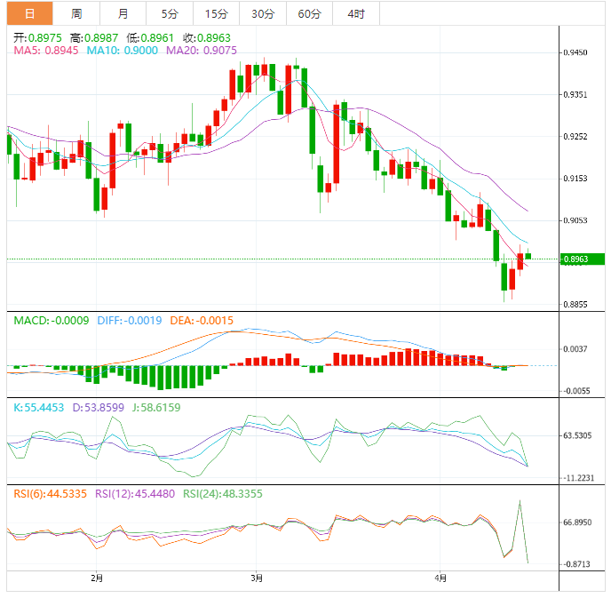 基本面上,美元兑瑞郎挣扎着从几个月低点延续两天的反弹,徘徊至0.8990-85。美元/瑞郎的买家仍然对美元的最新复苏抱有希望,这主要是因为美国国债收益率走强和美联储的鹰派押注。尽管如此,美元指数周五从周一的一年低点反弹,因为乐观的美国数据和鹰派的美联储谈话加入了美联储5月再次加息的可能性增加,以及市场对2023年晚些时候降息的押注减少。美国国债收益率也可能出现同样的情况,10年期和2年期美国国债收益率连续3天上涨,分别达到3.60%和4.20%。