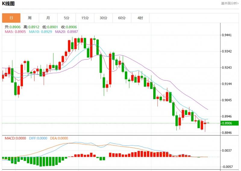 周四盘中,美元瑞郎报0.8906,跌幅0.00%。