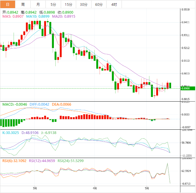 预计今天的交易区间在支撑位0.8850和阻力位0.9010之间。