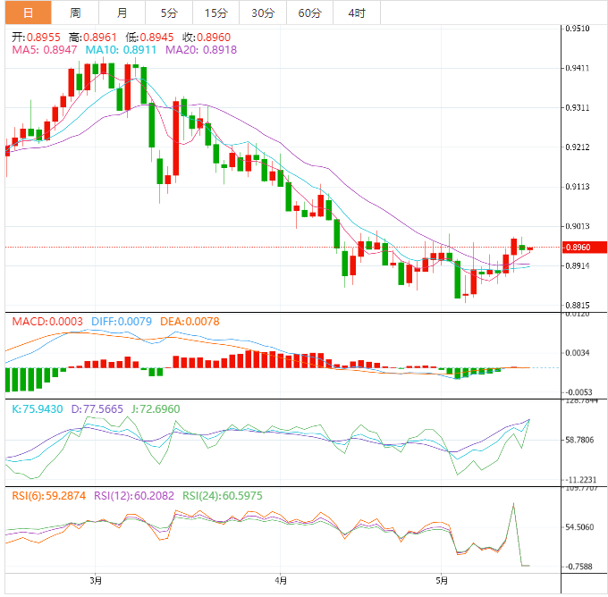 基本面上,美元/瑞郎整理至0.8940附近后,试图反弹。瑞郎资产需要突破更多阻力,以建立信心。美元指数还没有显示出明显的反弹,但似乎在102.40相邻支撑位上方维持脆弱。瑞郎方面,瑞士生产者/进口价格指数月率上升0.2%,与前值持平,而市场预期为-0.1%。瑞士生产者/进口价格指数年率降至1.0%,而预期为1.1%,前值2.1%。对终端消费者提供的商品价格不断上涨,可能迫使瑞士国家银行今后维持鹰派。