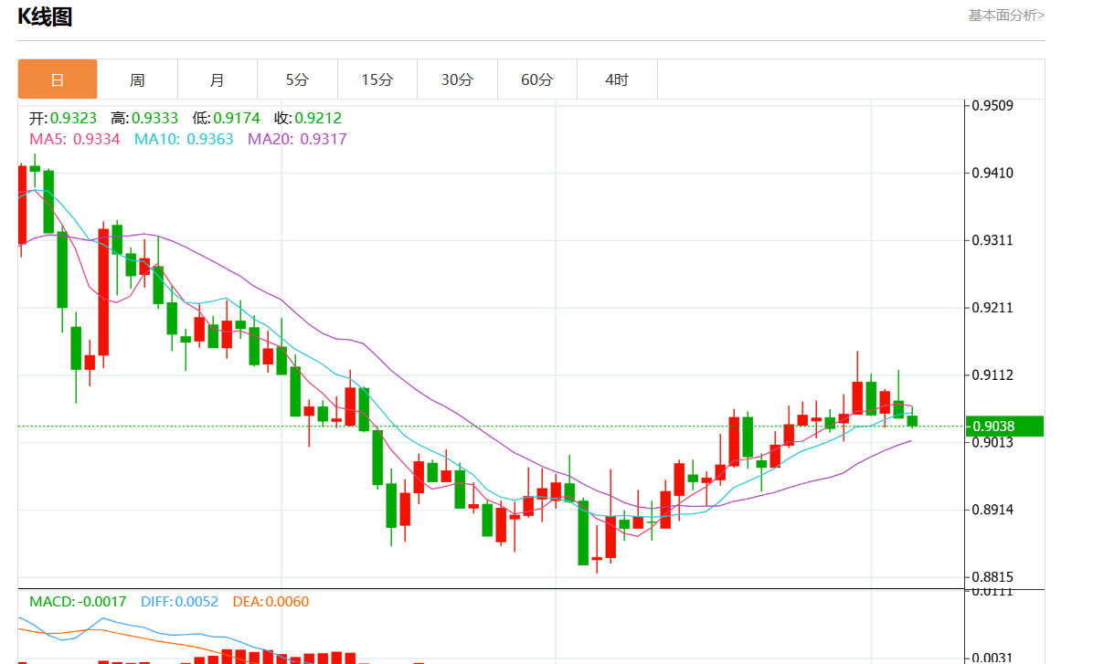 支撑位:0.9105 0.9090 0.9075