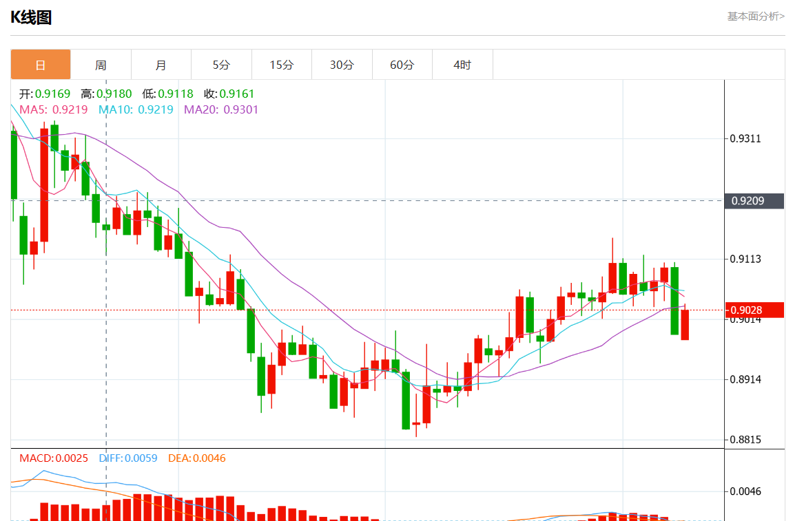 周六盘中,美元/瑞郎最新报0.9029,日图涨0.54%