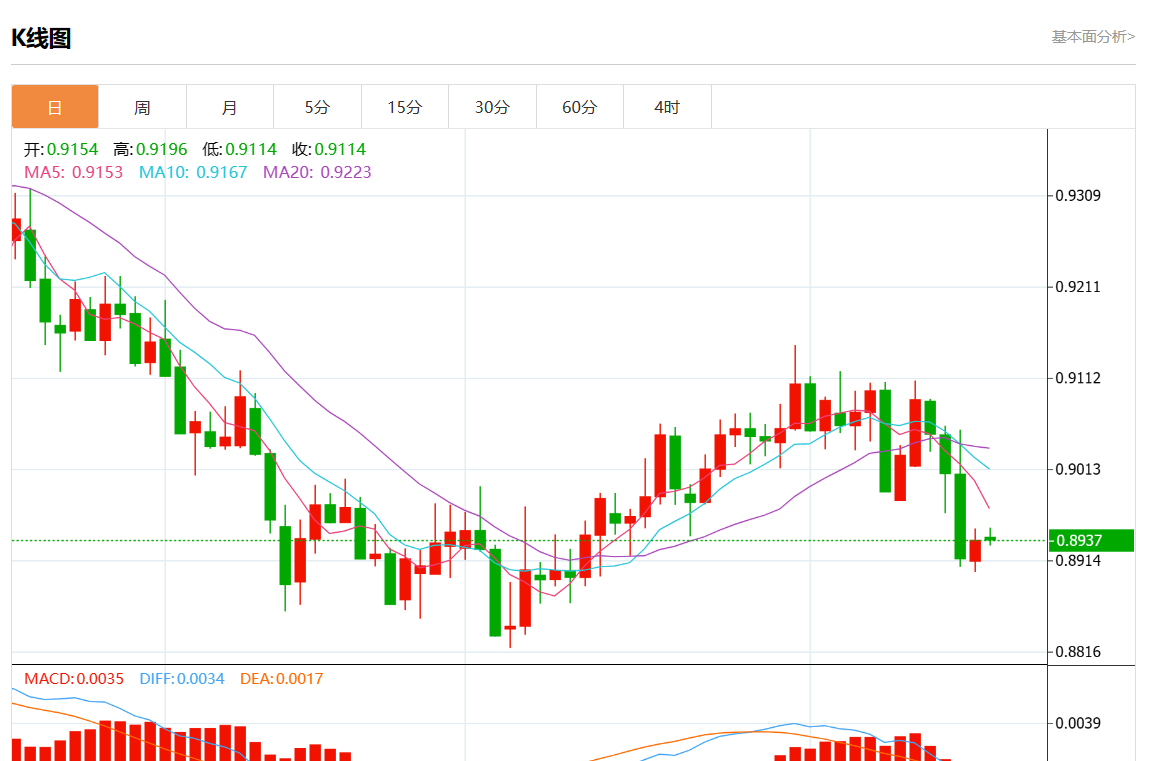 周一盘中,美元/瑞郎最新报0.8937,日图涨0.01%