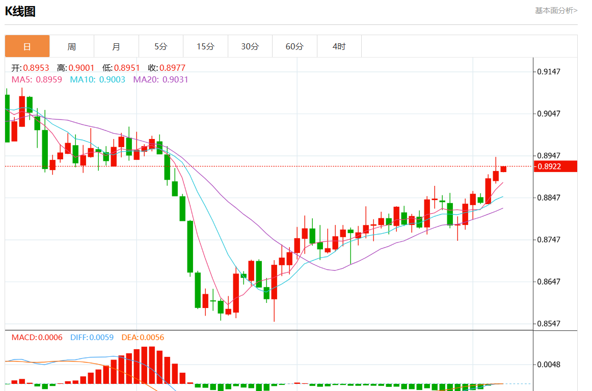 今日分析:在0.8895上方建立多头头寸,目标在0.8930和0.8945。