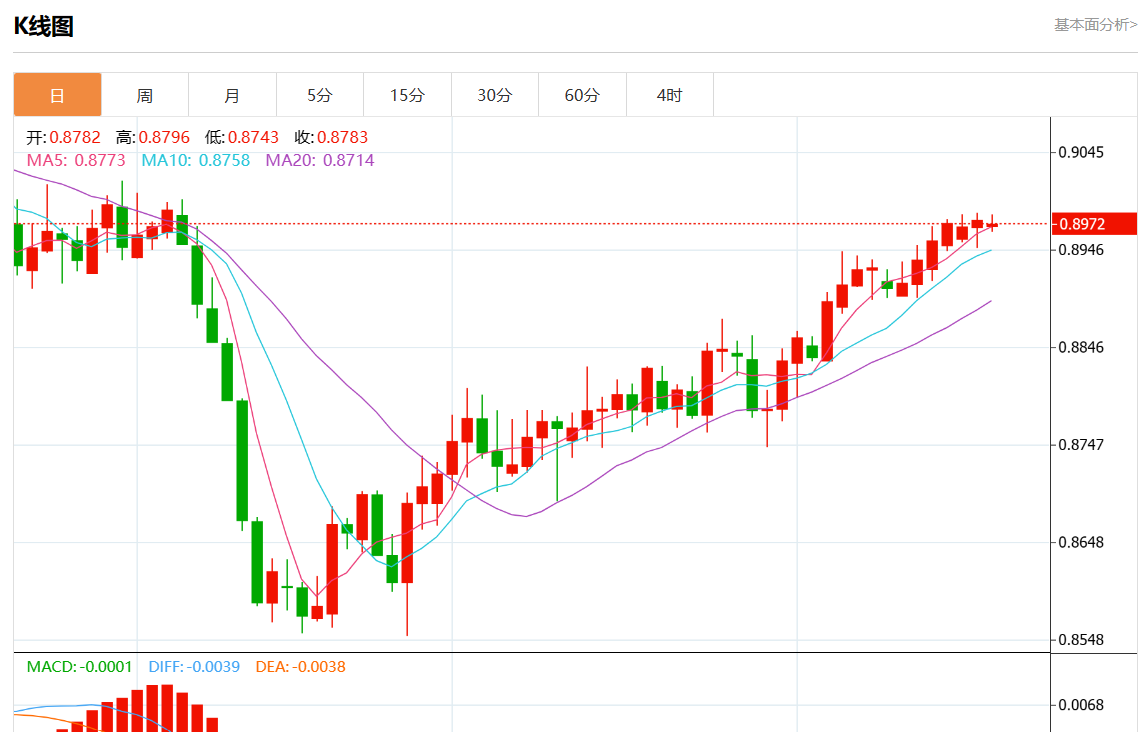 周三盘中,美元/瑞元报0.8983,涨幅0.07%。