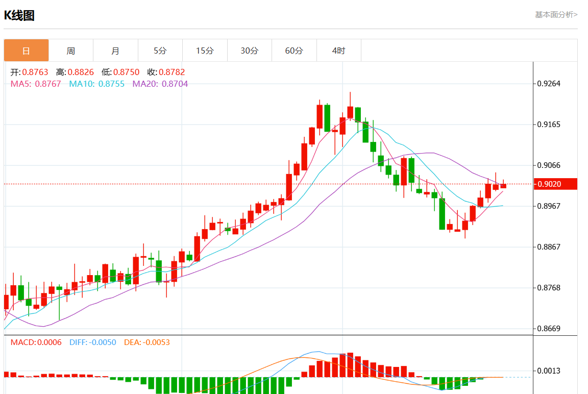支撑位:0.9065 0.9050 0.9035