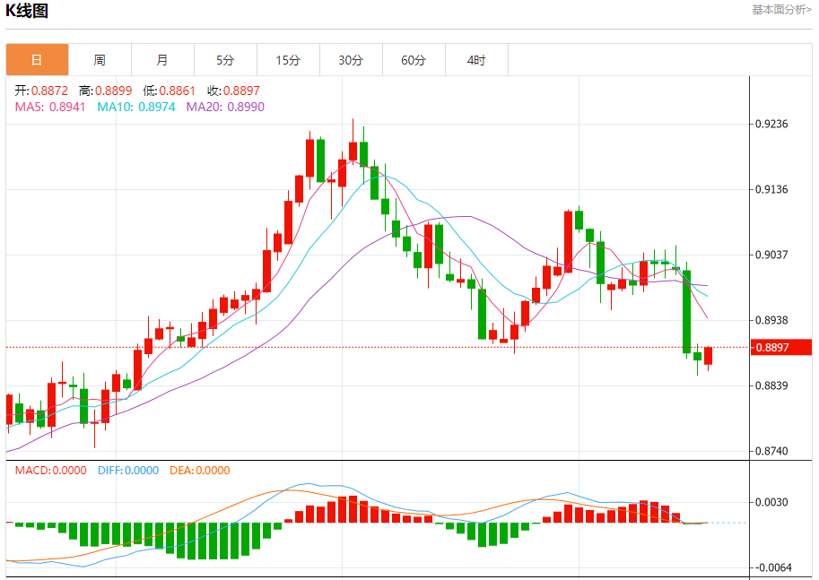 预计今天的交易区间在0.8880支撑和0.8950阻力之间。