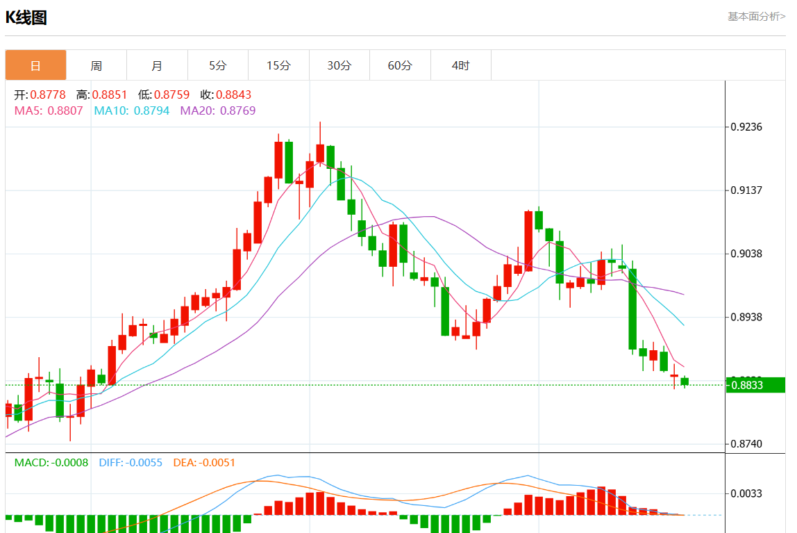 支撑位:0.8880 0.8865 0.8850