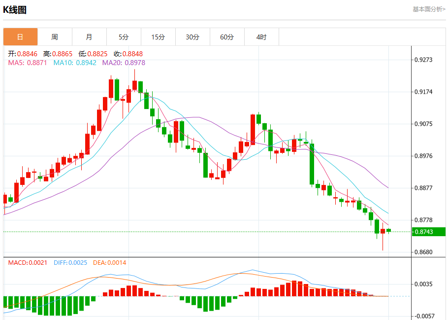 支撑位:0.8800 0.8785 0.8765