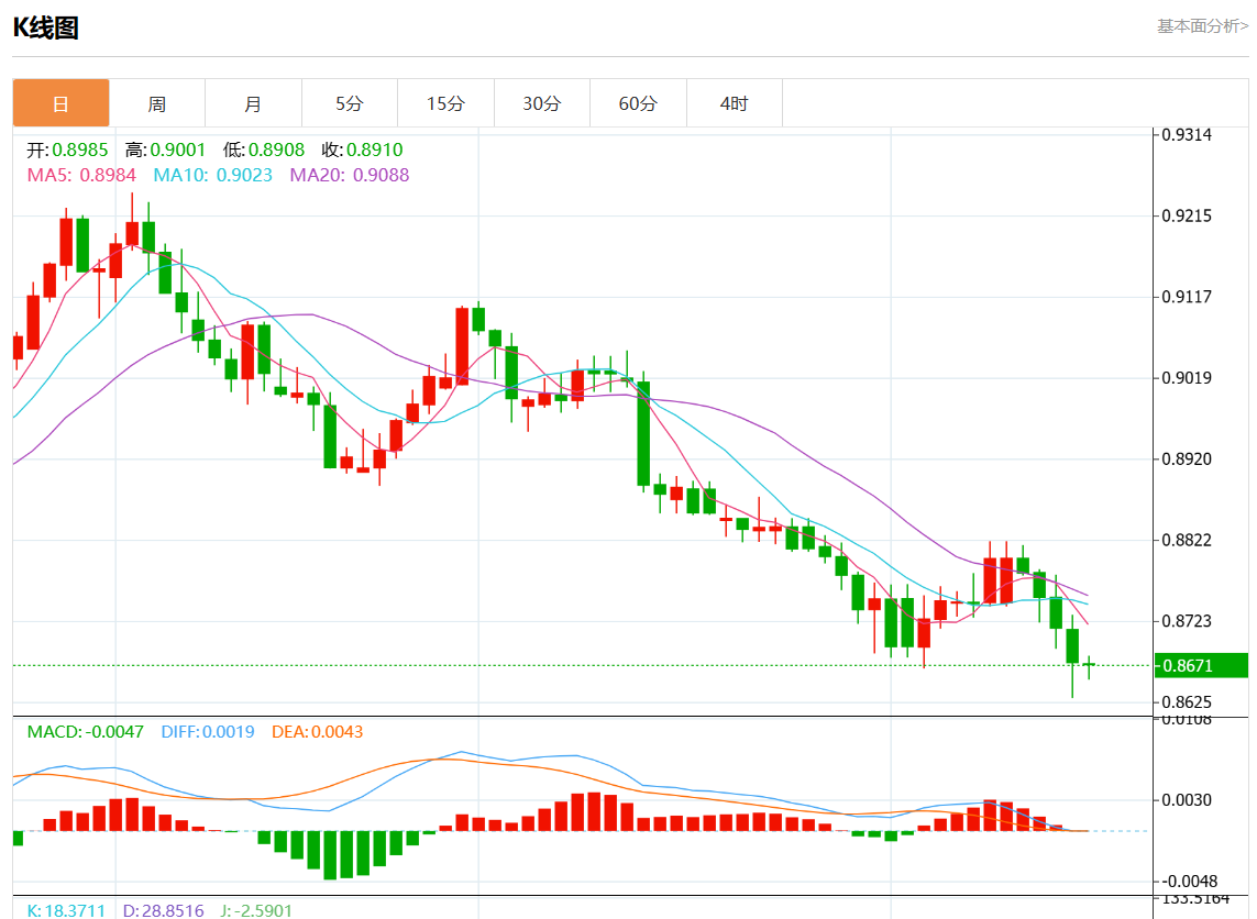 支撑位:0.8740 0.8715 0.8685