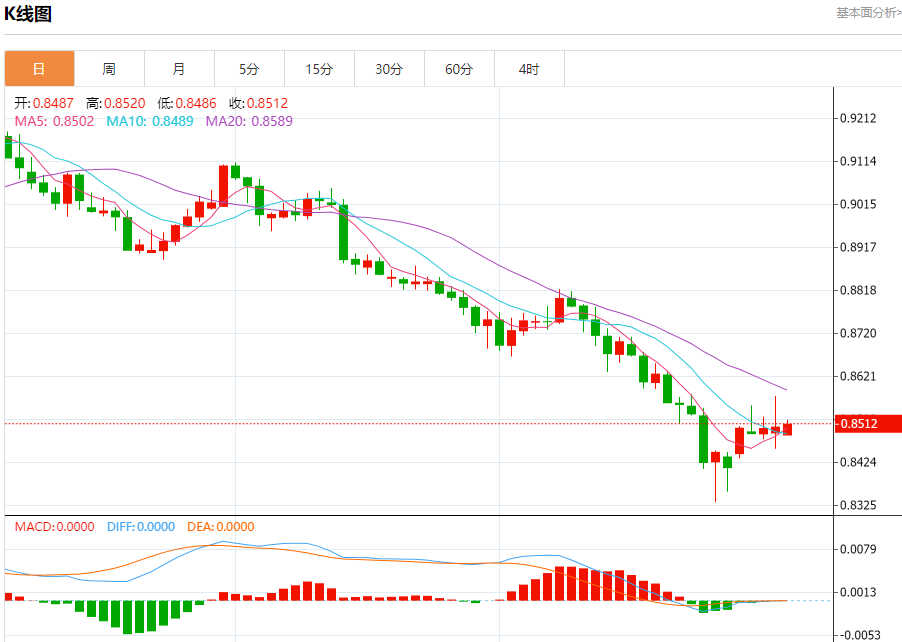 预计今天的交易区间在0.8430支撑和0.8600阻力之间。