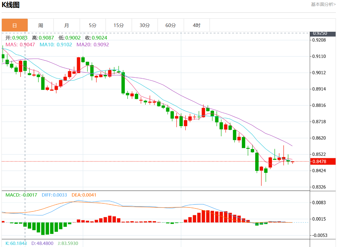 周二盘中,美元/瑞元报0.8513,涨幅0.03%。