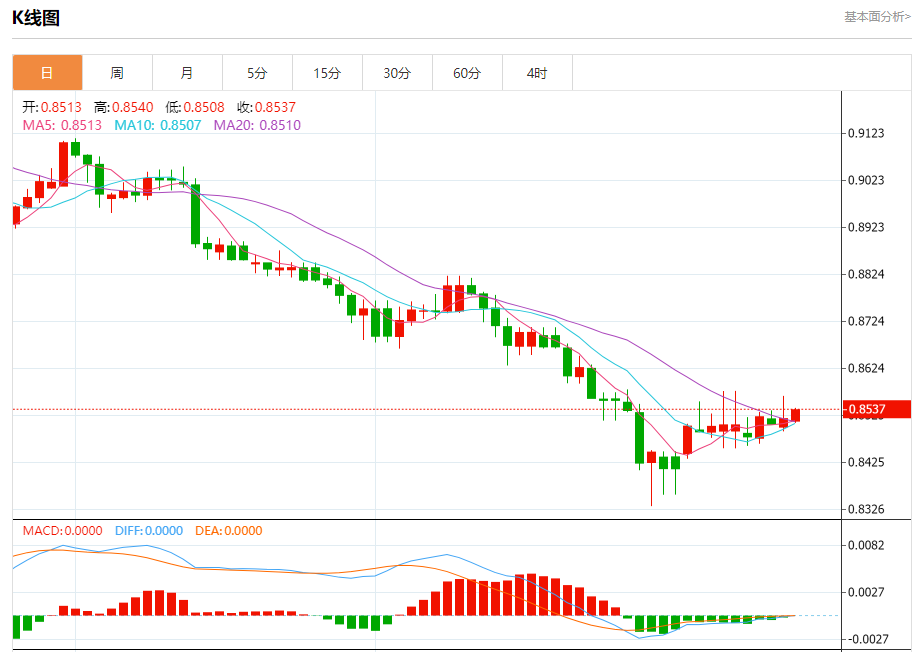 预计今天的交易区间在0.8460支撑和0.8600阻力之间。