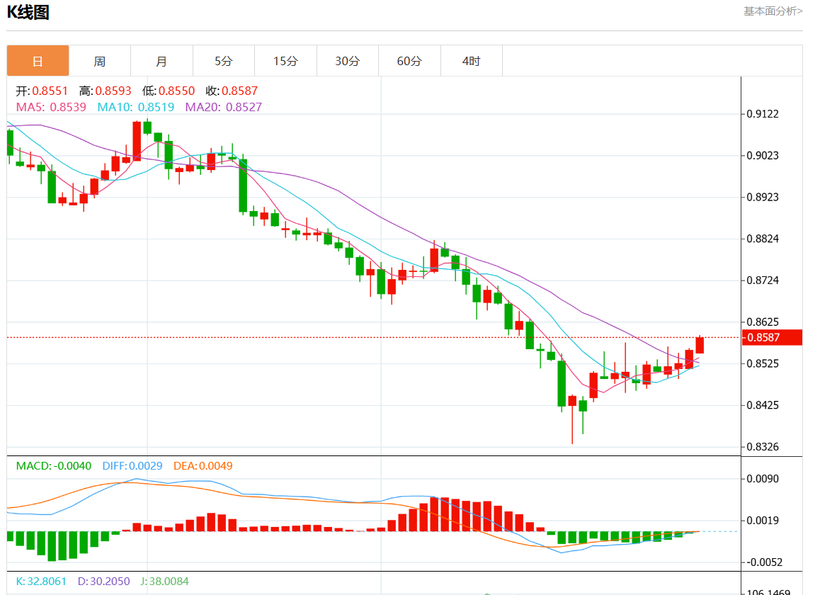 支撑位:0.8640 0.8620 0.8600