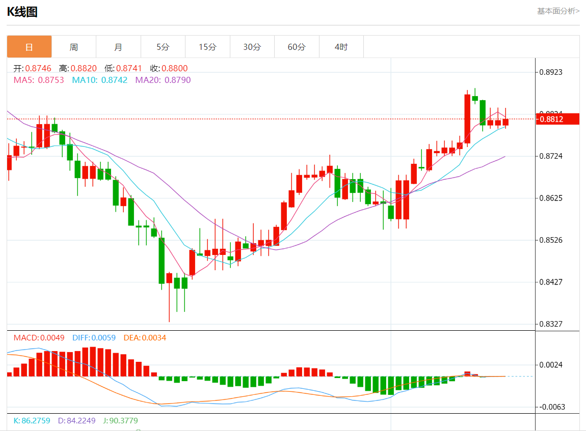 2月19日美元/瑞元行情综述:美元/瑞元报0.8812,涨幅0.16%