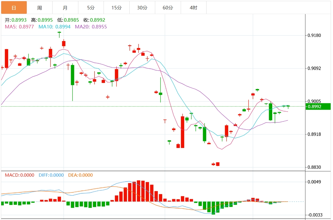 今天的预期交易区间在0.8900支撑位和0.9050阻力位之间。