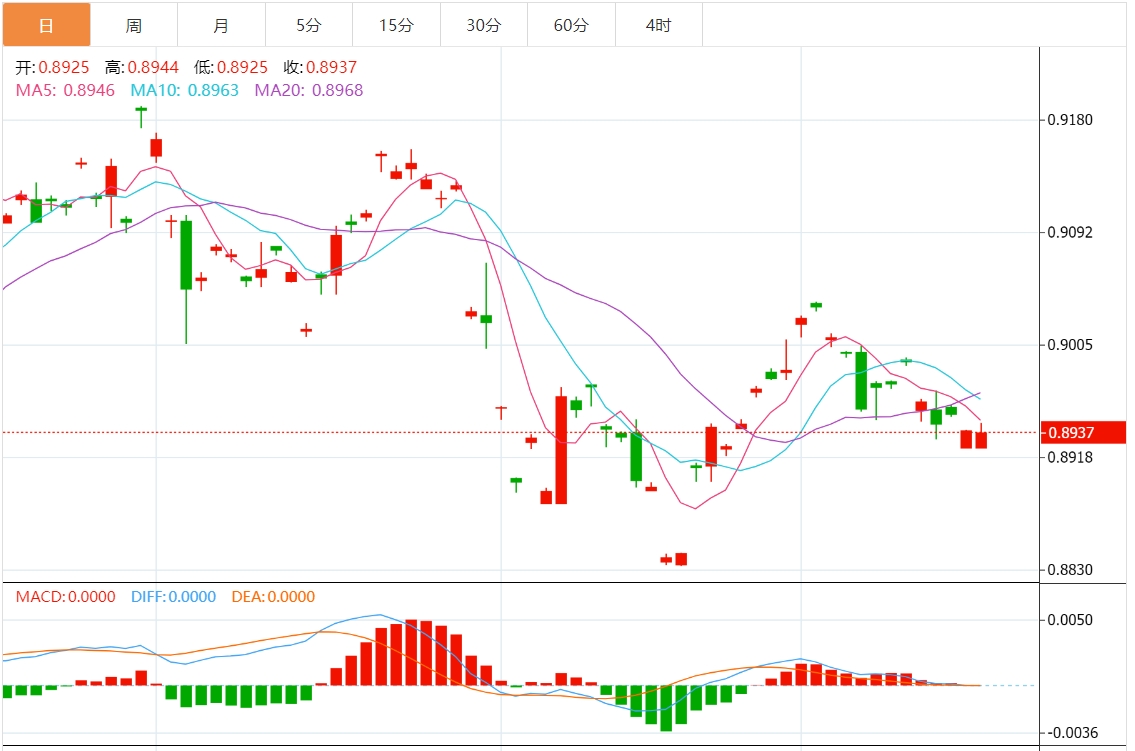今天的预期交易区间在0.8860支撑位和0.9000阻力位之间。