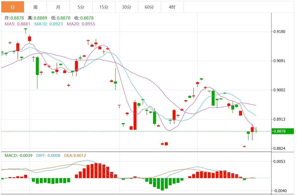 今天的预期交易区间在0.8830支撑位和0.8960阻力位之间。