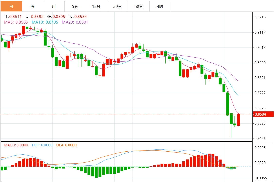 今天的预期交易区间在0.8510支撑位和0.8640阻力位之间。