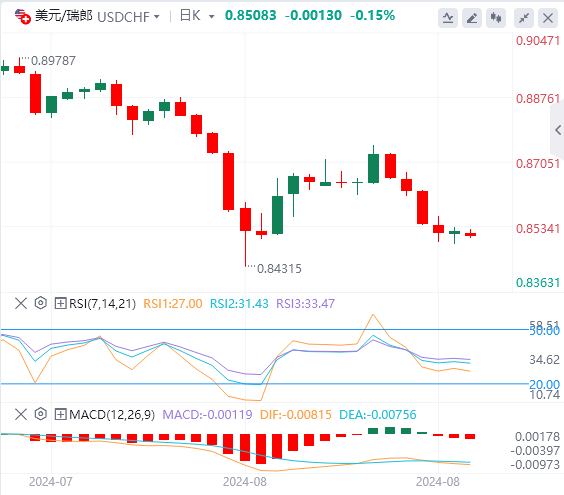 今天的预期交易区间在0.8440支撑位和0.8570阻力位之间。