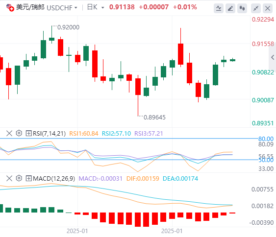 分析师认为,特朗普政府的关税政策可能会引发通胀,并给美联储带来进一步的压力,要求其保持高利率。市场预计今年将降息36个基点(bps),低于周五乐观的劳动力市场报告后的42个基点。这反过来又支撑了美元兑瑞士法郎(CHF)。