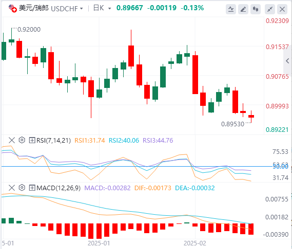 美元/瑞郎汇价或会在0.8900心理价位找到初步支撑位。跌破该水平将为该货币对在12月6日创下的两个月低点0.8736附近导航打开大门。