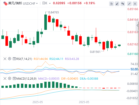 美元/瑞士法郎货币对可能将9天EMA的直接障碍目标为0.8219。突破该水平可能会改善短期价格势头,并支持该货币对探索下降通道上边界0.8300附近的区域,然后是50天EMA0.8365。