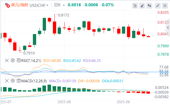 美元/瑞郎连续第二天延续下跌趋势,下跌0.16%,在触及日高0.8020后交投于0.8076。随着美元消化美联储主席杰罗姆·鲍威尔的鸽派倾向,瑞士法郎为调整利率打开了大门,瑞士法郎转向安全有利。