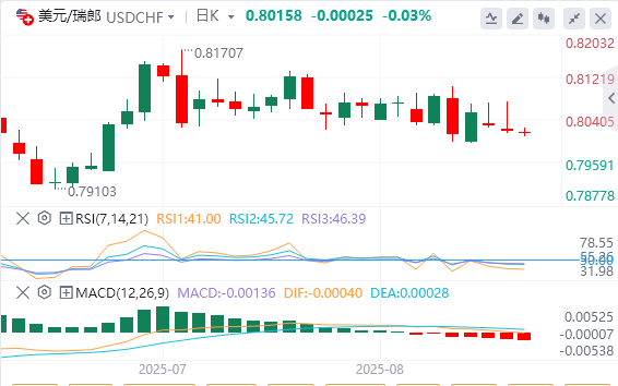 美元/瑞郎的盘中偏向保持中性,在0.8103阻力位完好无损的情况下有利于进一步下跌。下行方面,跌破0.7999将重新测试0.7871低点。然而,突破0.8103将转向上行,目标为0.8170,以延续0.7871的修正形态。