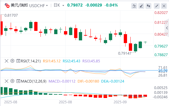 在关键数据风险方面,交易员一直在消化美联储可能采取更激进的政策宽松政策,并几乎完全消化了今年剩余时间的三次降息。周三公布的美国生产者价格指数(PPI)降温提振了押注,该指数被认为打压美元,并成为美元/瑞郎货币对的阻力。