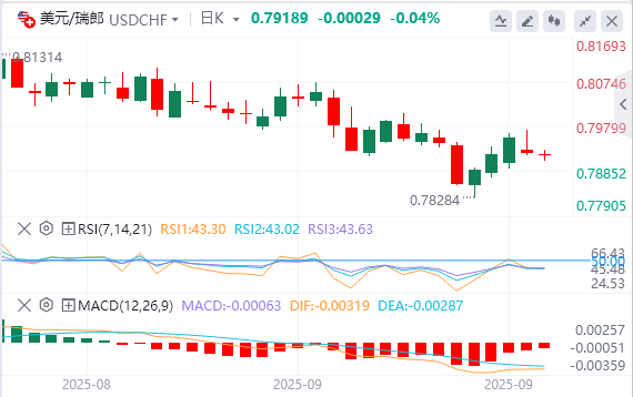9月23日,周二亚市早盘,美元/瑞郎徘徊在0.7918附近。