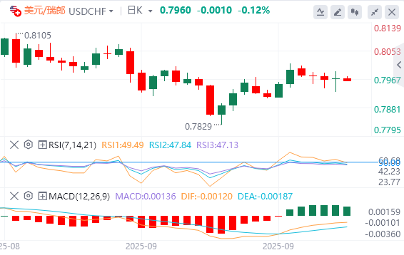 在周三令人失望地公布美国私营部门就业细节后,交易员加大了对美联储将在年底前再降低两次借贷成本的押注。自动数据处理报告称,私营部门雇主在9月份裁员32人,创下2023年3月以来的最大降幅。除此之外,美国政府部分关门加剧了围绕美元的看跌情绪,并限制了美元/瑞郎货币对的上涨空间。