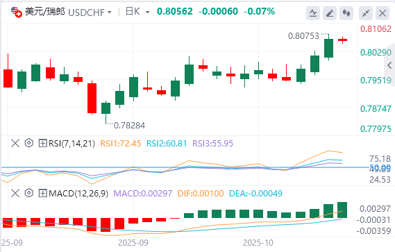 美元/瑞郎价格在最后一盘中小幅下跌,在达到0.8070后,这代表了我们在之前分析中建议的目标,试图获得看涨势头,可能有助于其突破这一阻力位,因为看涨修正趋势在短期基础上占主导地位,并且它与该轨道的支撑趋势线一起交易,尽管达到超买水平,但随着相对强弱指标出现积极信号。