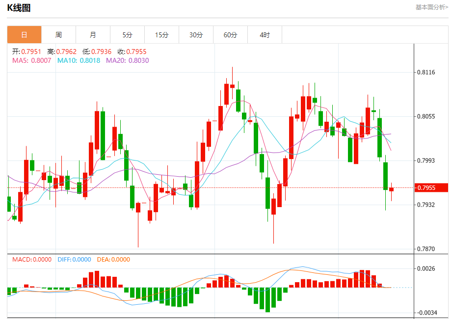 周五纽盘,瑞郎兑美元交投于0.7957,涨幅为0.03%。
