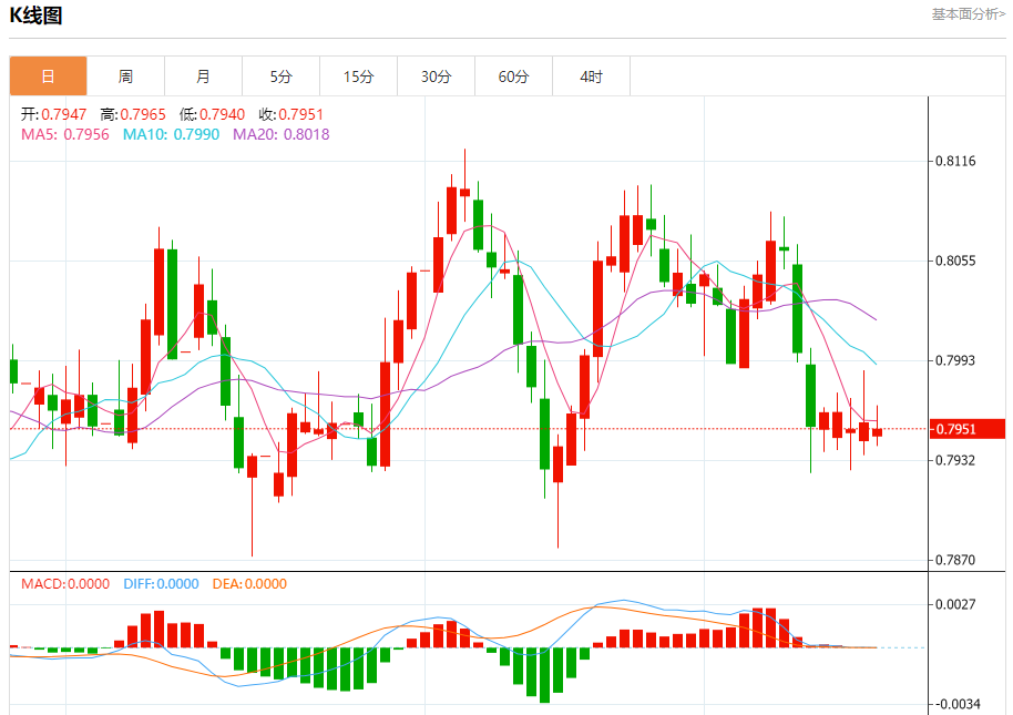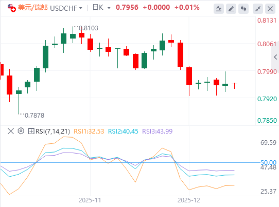 12月18日,周四欧市盘中,美元/瑞郎汇率在0.7950附近狭窄区间交易。随着投资者等待美国(US)11月通胀数据发布,瑞士法郎货币对出现波动,该数据将于格林威治标准时间13:30公布。