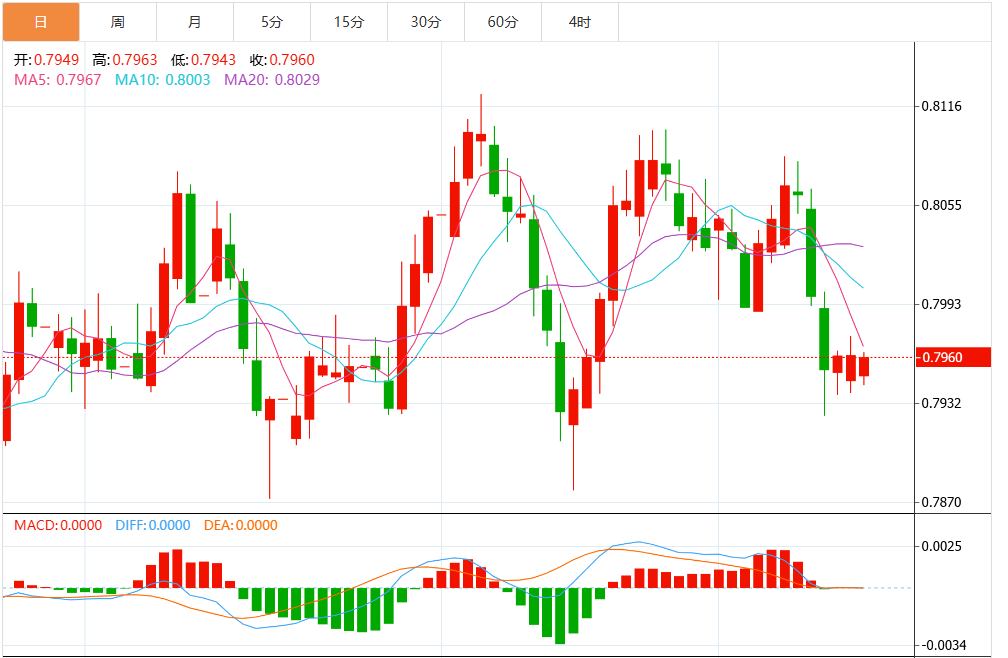 美元/瑞郎在接近0.7915交易,但接近其三个月低点0.7830。 20日指数移动平均线(EMA)在0.7966处保持较低,限制反弹并对该货币对施加压力。