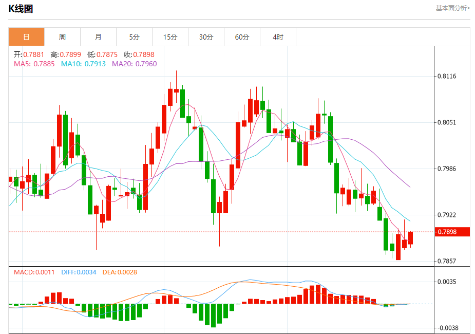 周二纽盘,瑞郎兑美元交投于0.7899,涨幅为0.13%。