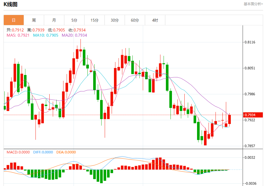 周二纽盘,瑞郎兑美元交投于0.7937,涨幅为0.27%。