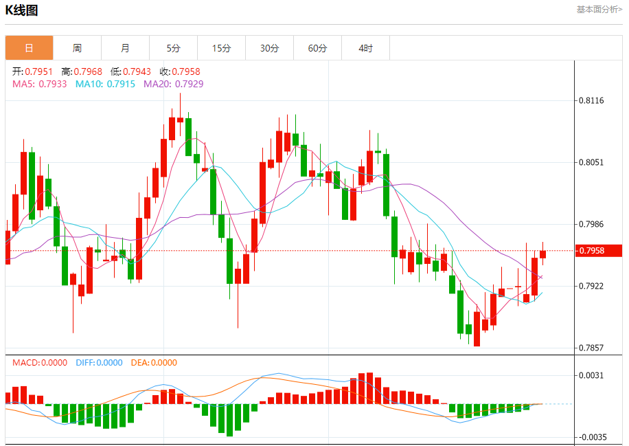 周三纽盘,瑞郎兑美元交投于0.7960,涨幅为0.09%。