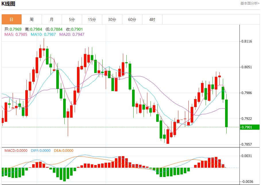 周二纽盘,瑞郎兑美元交投于0.7903,跌幅为0.88%。