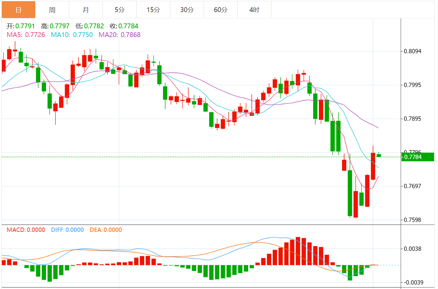 在下行方面,即时支撑位在0.7700的整数水平,随后是接近0.7627的下布林带。趋势条件依然稳固,平均方向指数(ADX)在35左右,表明尽管当前的修正反弹,整体走势仍然偏向卖方。
