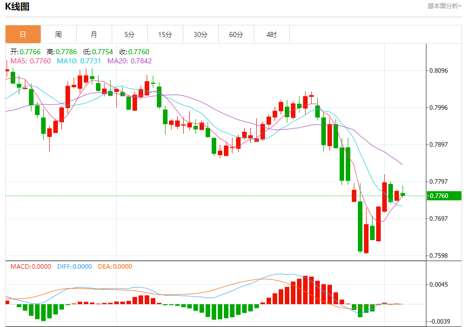 周四纽盘,瑞郎兑美元交投于0.7761,跌幅为0.16%。